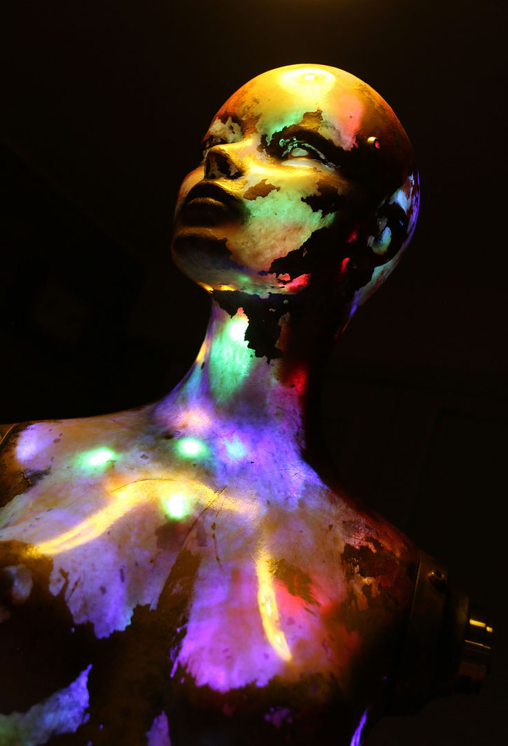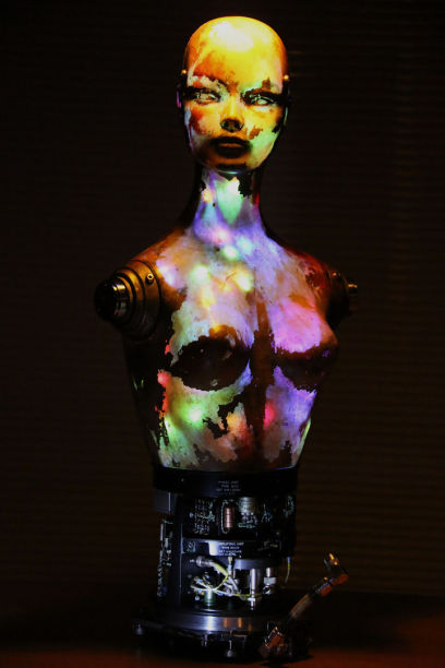 This sculpture is about keeping AI in shackles, restrained and contained, but still working out the problems of the world and advancing science like never before.