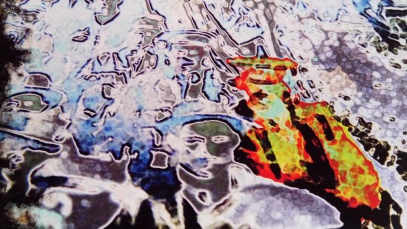 It is an old "World War 1" photograph (taken over a century ago at the very start of the War), that I have had for 50 years. I painted with water colour, re-photographed and then digitally painted. (Shown exhibited in H-art Gallery).