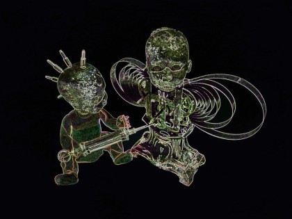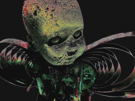 I was inspired to create this piece through my memories of Rotwangs Robot from Fritz Langs 1927 'Metropolis' film (the very first full length Sci/fi Film). On seeing the film as a young boy. I was 'blown away' when the 'Robot' slowly emerged with all those electrical halos energising her body. To this day, it still sends a shiver up my spine :)
