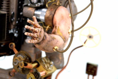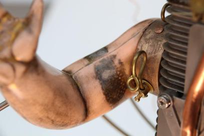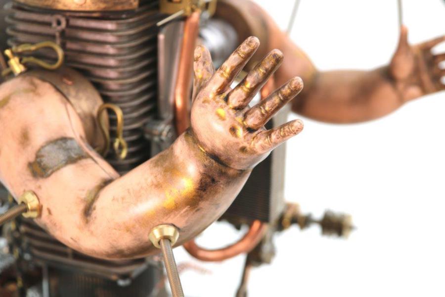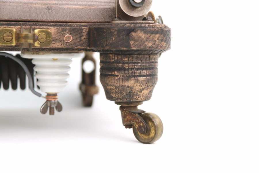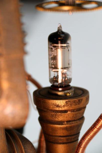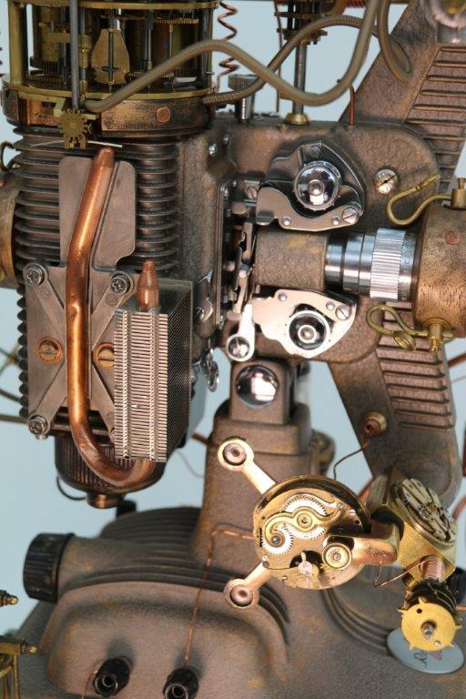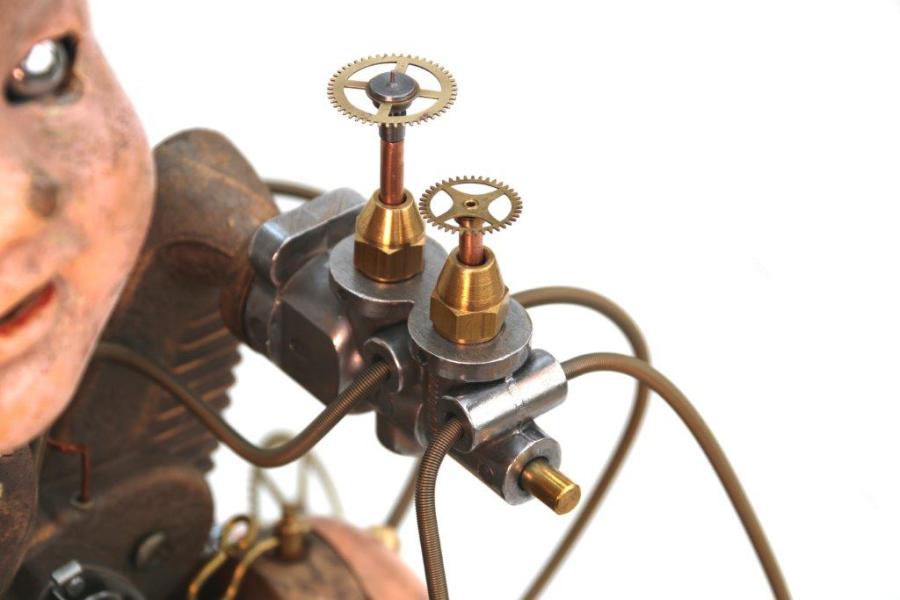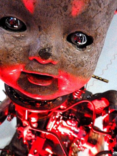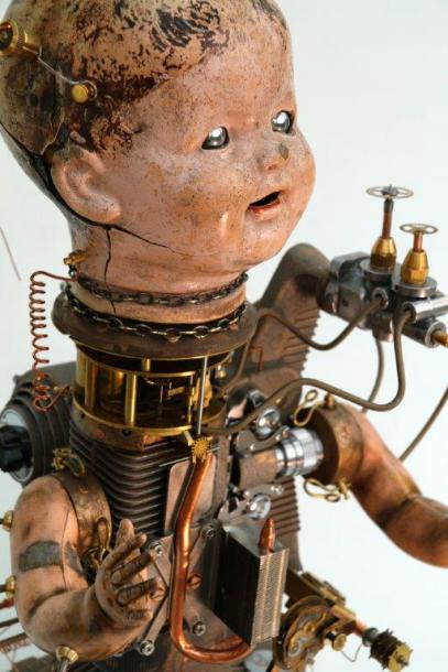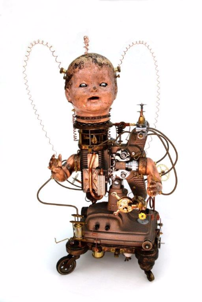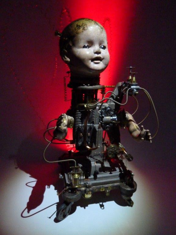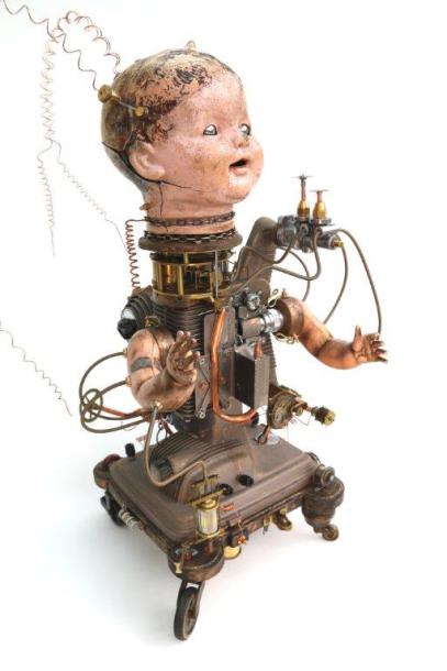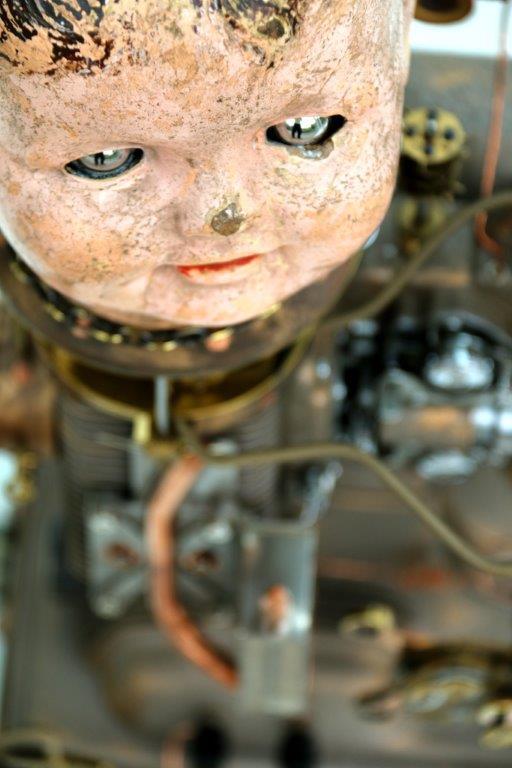 This sculpture, called 'In a World of Magnets and Miracles' was created from antiques and vintage items (she is called 'Miracle' for short).