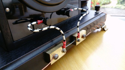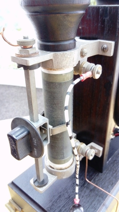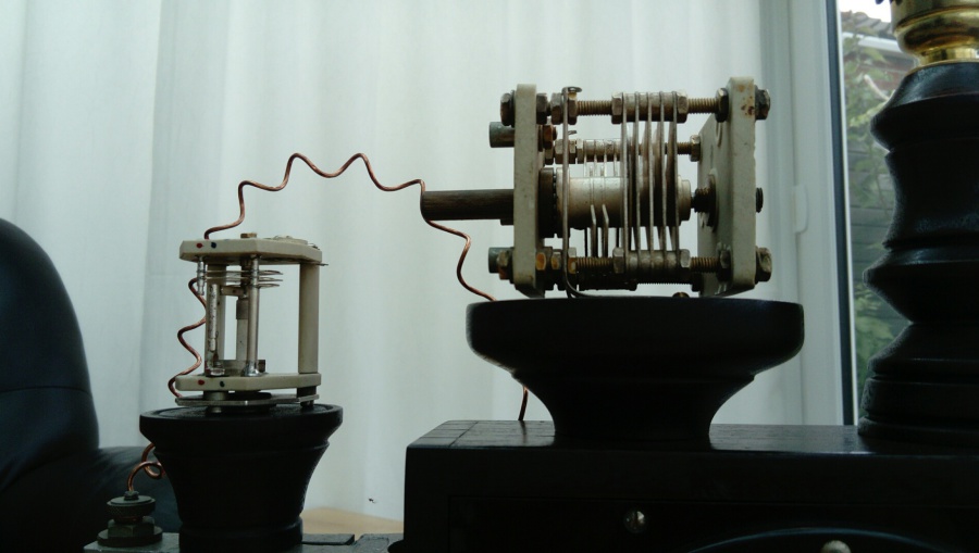 2 Tuner Capacitors sitting on turned Ebonised Mahogany platforms.