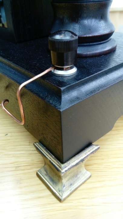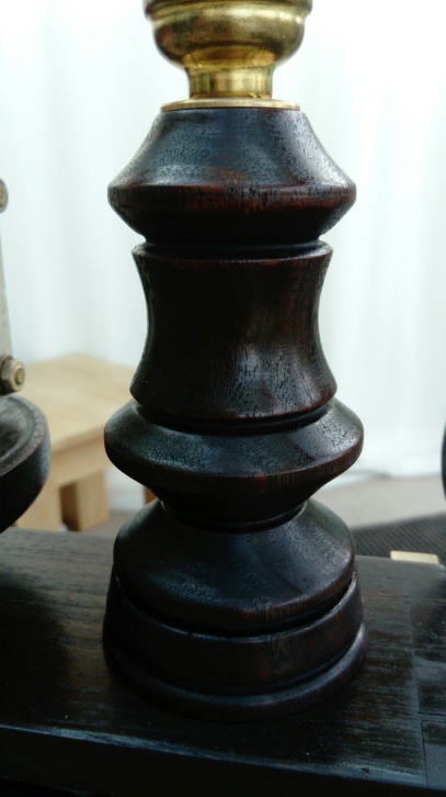 Turned and Ebonised Mahogany mount for the Brass lamp holder to stand on.