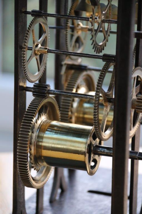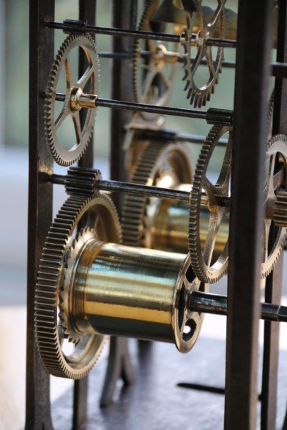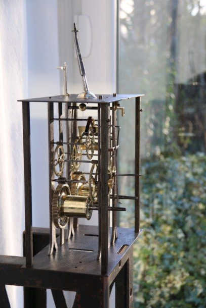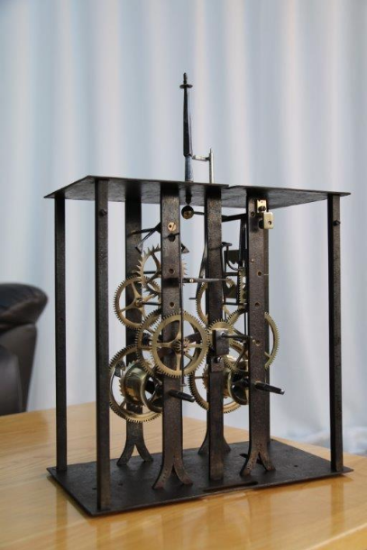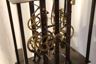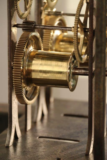 Side view, showing the fading condition of this 260 year old clock movement.
