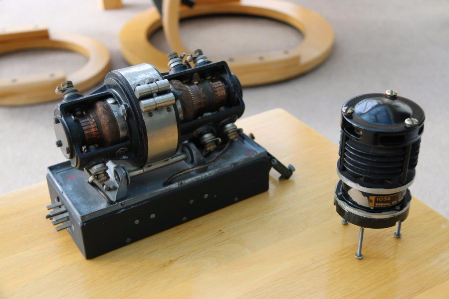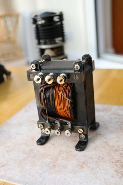 On the left is a transformer for a high frequency radio, off a World War 2 Bomber. On the right is a Voltage Regulator off a World War 2 Spitfire. Circa 1940