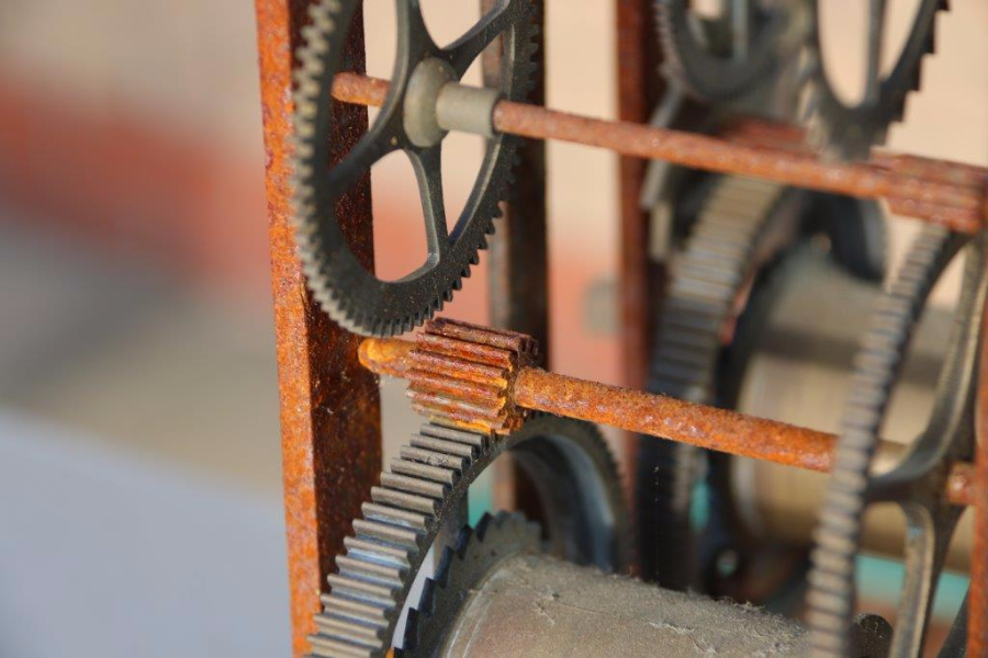 All the Brass cogs and wheels, seriously patinated over the decades of non-use.