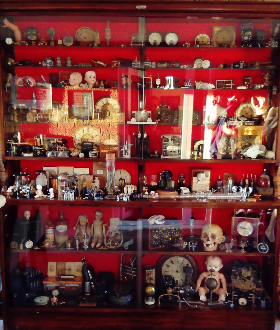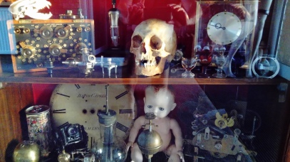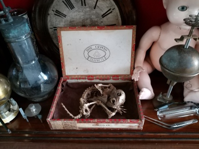 This Edwardian display cabinet, houses a varied collection of 'Curios' that we love to look at and touch. I also use various pieces for my sculptures. The pleasure gained from the utter visual wonderment and curiosity within this cabinet, can not be valued or explained.
