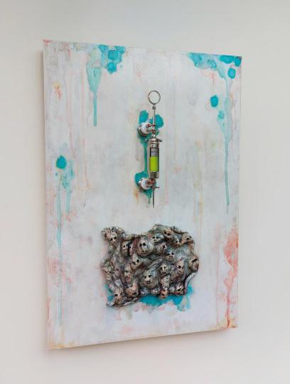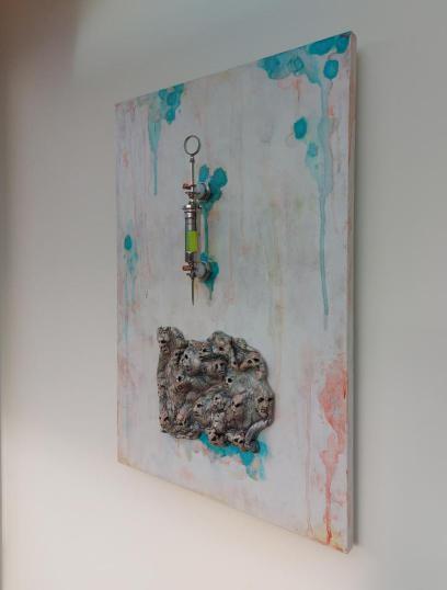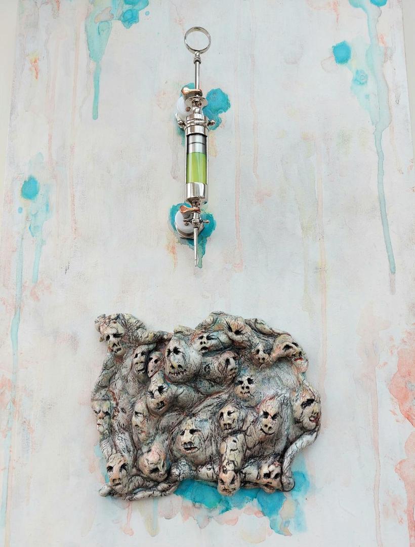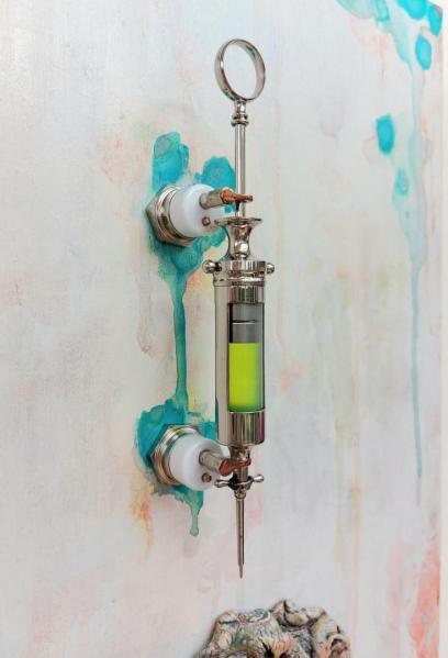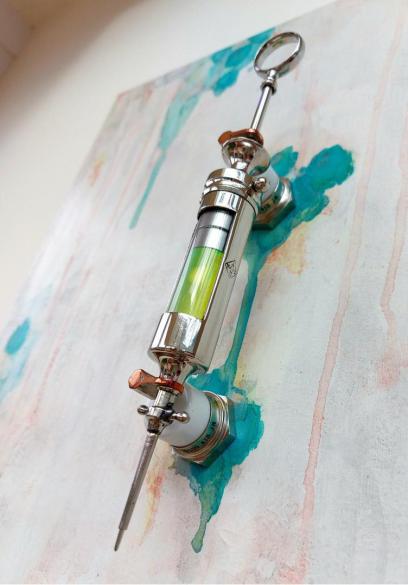 This syringe is over 70 years old. I wanted it to look like it was full of vaccine? ready to be injected, but I dare not put a liquid into it incase it leaked.