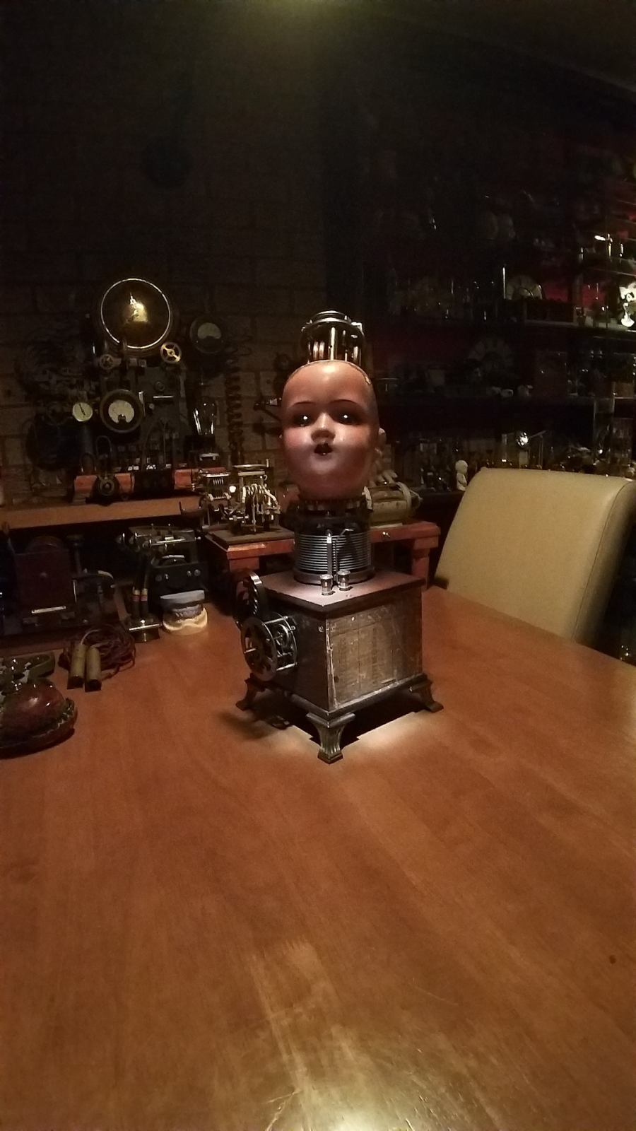 The large ball bearings used for the eyes came from 'The Museum of Victorian Science'.